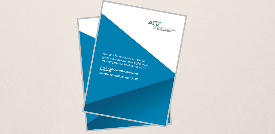 Montréal (Québec), le 14 février 2022 – Dans le cadre des consultations prébudgétaires 2022-2023, l’Association québécoise des technologies (AQT) s’est donné comme objectif de participer à l’identification de mesures pouvant contribuer à une relance économique structurante et a concentré l’essentiel de ses recommandations sur la stimulation des revenus d’exportation, une ambition que partage le gouvernement du Québec.