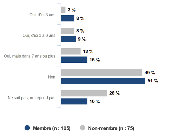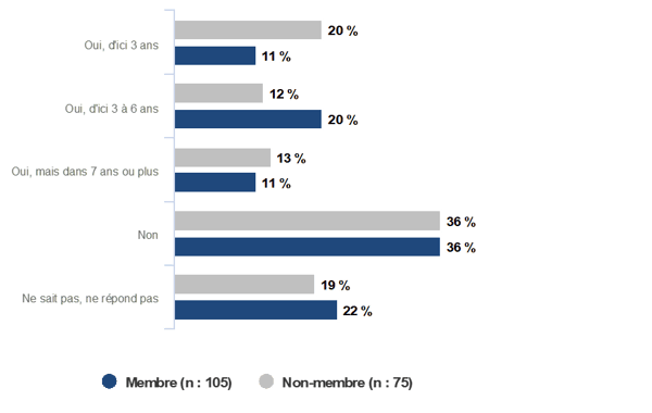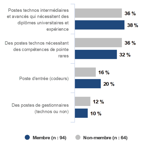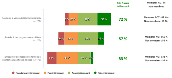 - Nombre moyen d’employés au sein des entreprises répondantes : 68 employés (membres de l’AQT) | 64 employés (non-membres de l’AQT)