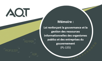 Montréal, le 29 septembre 2017 — L’Association québécoise des technologies (AQT) a présenté hier soir les recommandations de son mémoire à la commission parlementaire sur le projet de loi 135 renforçant la gouvernance et la gestion des ressources informationnelles des organismes publics et des entreprises du gouvernement. Ce projet de loi, déposé par Pierre Moreau, Président du Conseil du Trésor, s’ajoute à une série de mesures pour optimiser les TIC au sein de l’État. L’AQT, organisme à but non lucratif agissant comme représentante des entreprises en technologies de l’information et des communications (TIC), se déclare en faveur du projet et estime que cette initiative s’inscrit dans la série des gestes concrets vers une saine gestion des finances publiques. Toutefois, elle soulève le risque possible que la nouvelle structure projetée ne dispose pas de pleins pouvoirs pour assurer une saine cohésion entre les entités de l’État.