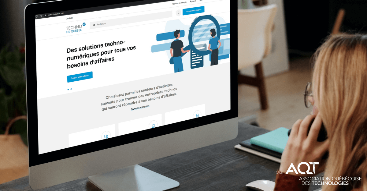 Montréal (Québec), le 26 avril 2022 – Opter pour une solution technologique québécoise n’aura jamais été aussi simple grâce au catalogue en ligne technoduquebec.net. Développée par l’AQT – Association québécoise des technologies avec la collaboration du gouvernement du Québec, cette plateforme non transactionnelle permet aux usagers de trouver en quelques clics des fournisseurs offrant des solutions technos et des services numériques pour tous leurs besoins d’affaires et à proximité.